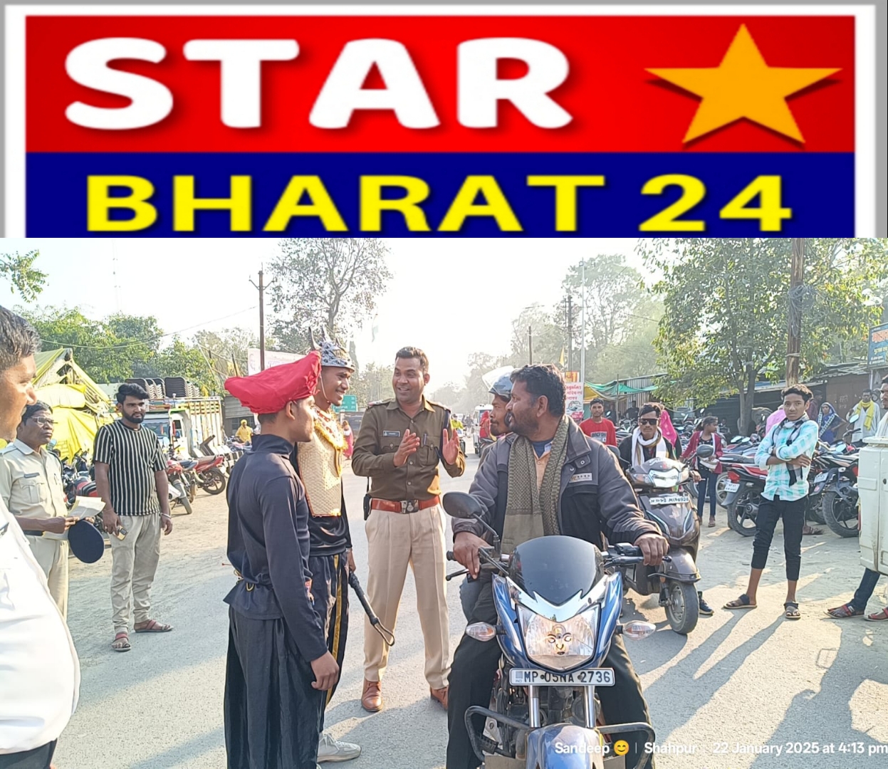 यातायात पुलिस एवं थाना शाहपुर द्वारा ग्रामीण क्षेत्रों में यातायात जागरूकता अभियान